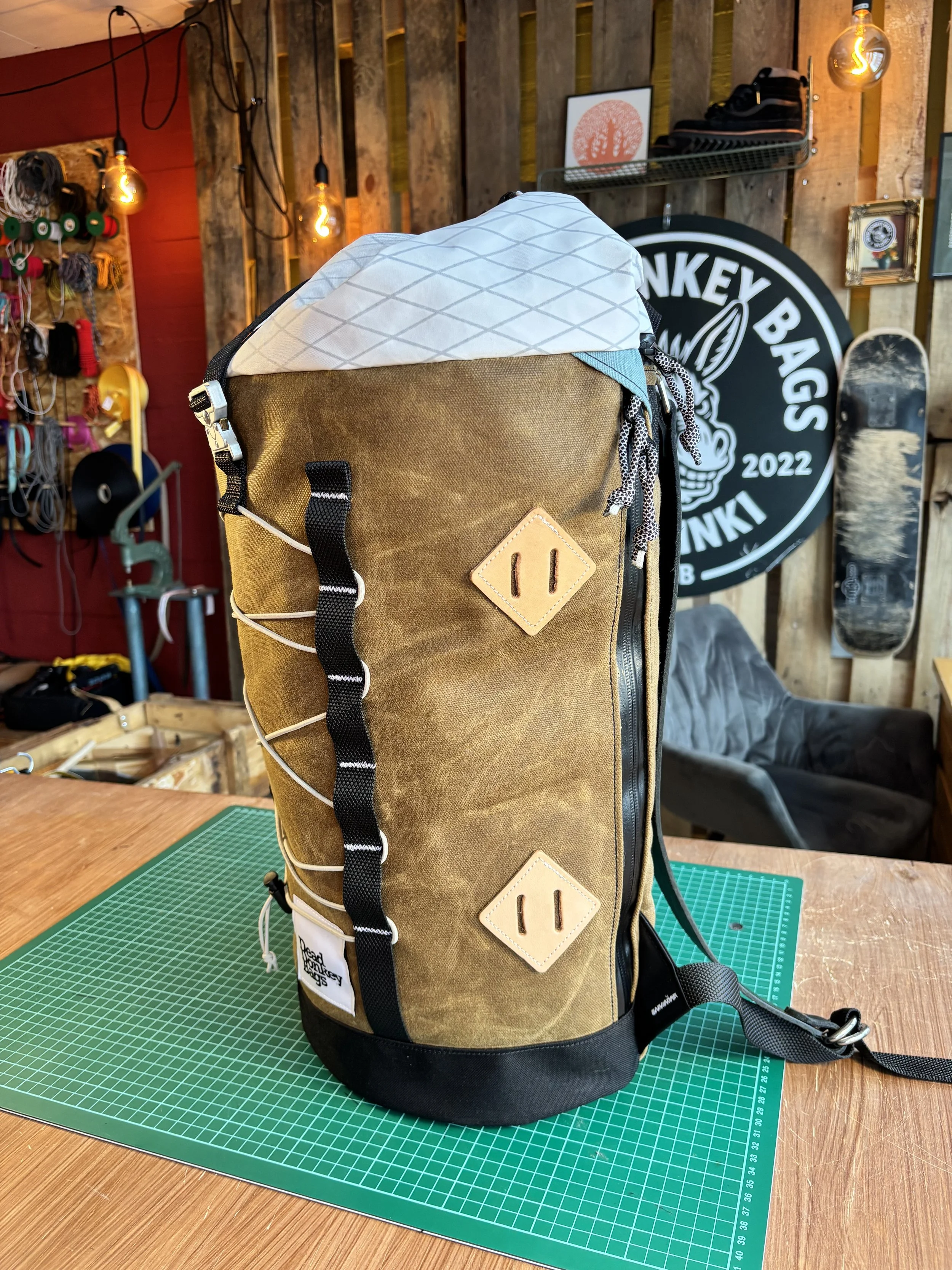 Standard materials on outside are cordura 1000d, Xpac & Waxed canvas